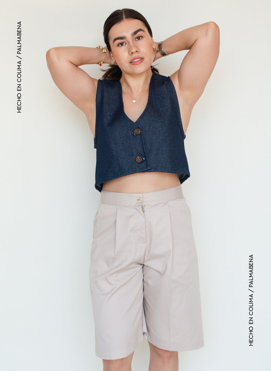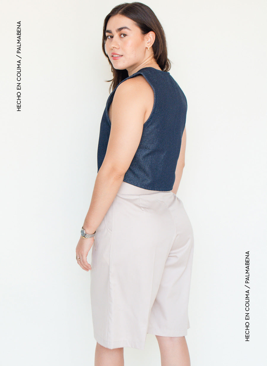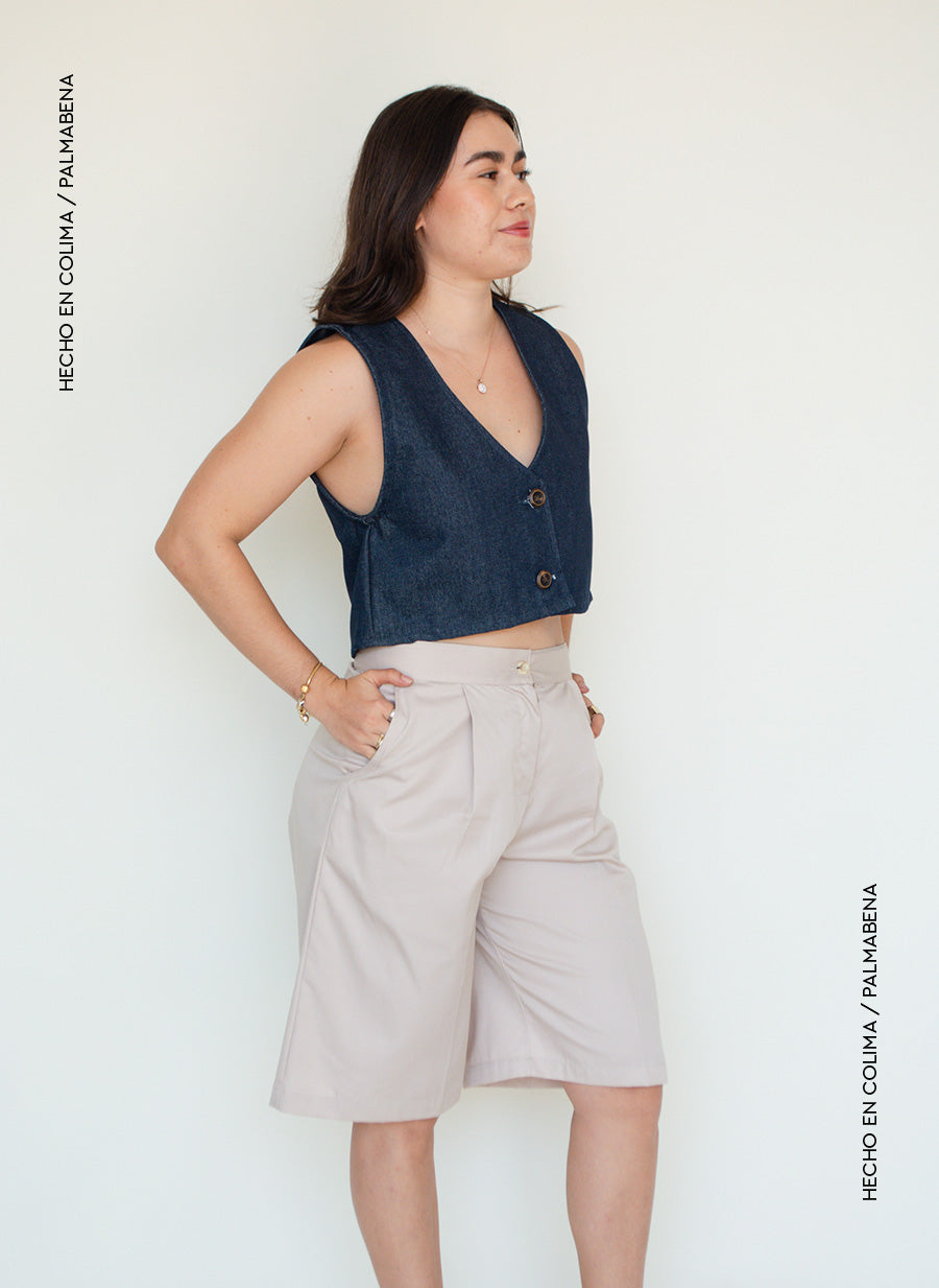 Bermuda tiro alto tipo cargo, tela fresca en color arena, un imperdible esta temporada😎