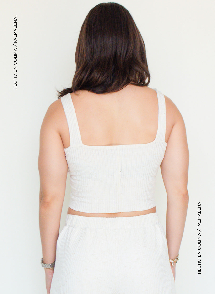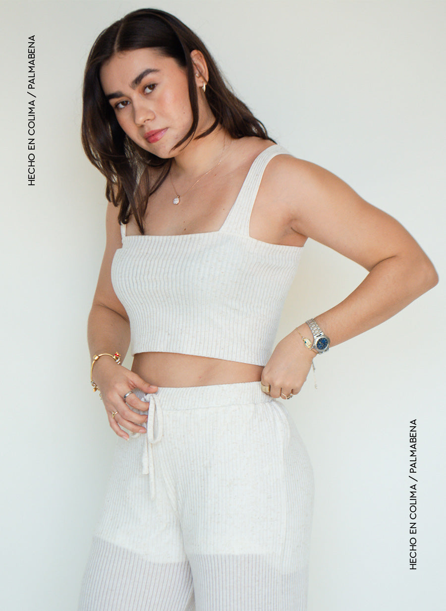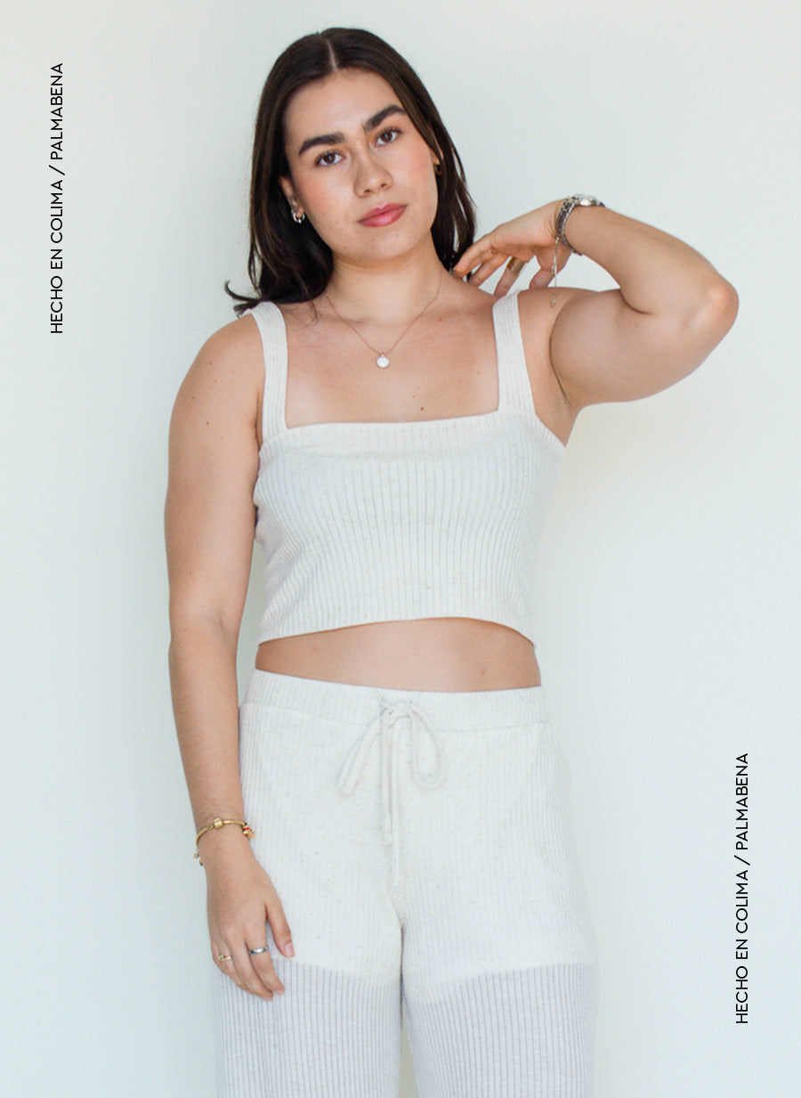 Crop top rib tirante ancho en color avena, combínala con el pantalón y completa el look😍☀